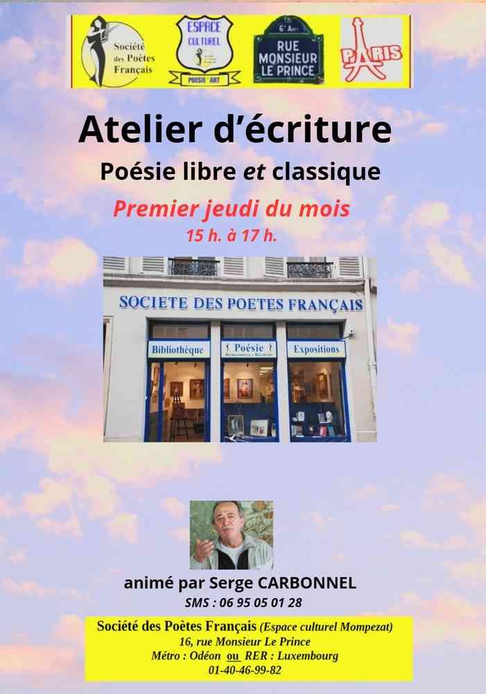 L’inspiration poétique jaillira de la rencontre entre le sujet proposé (thème, photo, tableau, etc..) et l’inconscient du poète. Tous les participants travailleront autour de ce même sujet et la diversité des créations ne pourra être qu’un enrichissement pour tous.