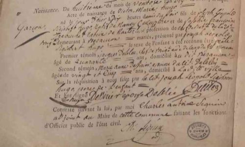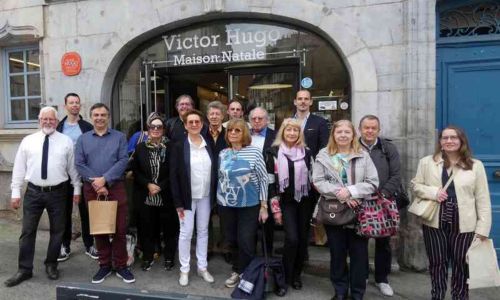Un vibrant hommage fut rendu au grand poète pour la troisième année par Annick Gautheron dans sa maison natale. La salle voûtée appelée « Gavroche » se prêtait on ne peut mieux aux propos 2025 « Victor Hugo et Notre- Dame de Paris, sa renaissance le 8/12/2024 ». Commençant par Notre-Dame, le monument, Annick rappela les incendies d’avant celui du 15/04/2019 : ceux du 29/07/1830 et 14/02/1831. Elle fit ressortir les destinées croisées avec cette Cathédrale gothique d’Eugène Viollet-le-Duc (1831) et Philippe Villeneuve (1980), tous deux âgés de dix-sept ans ! Puis, revenant sur le roman de Victor Hugo, de ses difficultés de conception, aux critiques mitigées des écrivains, journalistes, à sa sortie, ponctuées de lectures par Jean-Pierre Jacquemin, dont un extrait du roman sur l’incendie de Notre-Dame. Rappelant aussi que, cet enfant non baptisé et père n’ayant pas souhaité faire baptiser ses propres enfants, était pourtant profondément croyant : « Je refuse l’oraison de toutes les églises. Je demande une prière à toutes les âmes. Je crois en Dieu ».